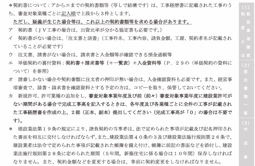 経審において最も核となる部分と言える工事経歴書と、その裏付けとなる契約書類ですが、