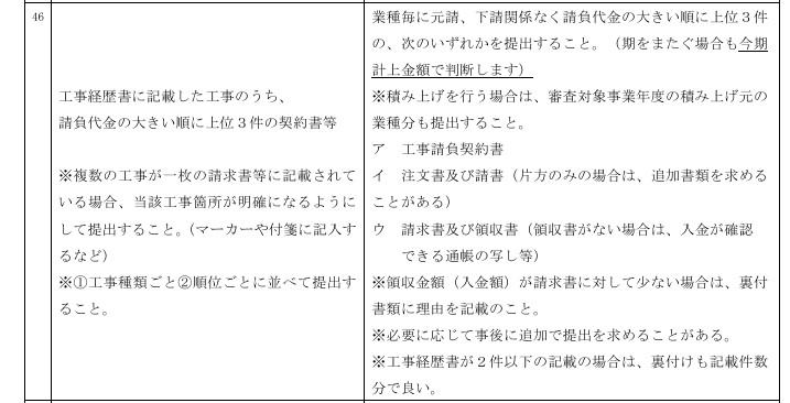 提出する裏付書類は、埼玉県と同様、元請下請関係なく請負金額の大きい順に上位3件です。