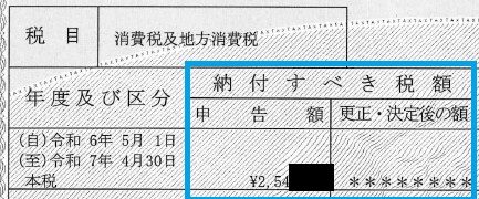 上記の⑨と⑳の合計=消費税納税証明書その1の納付すべき税額