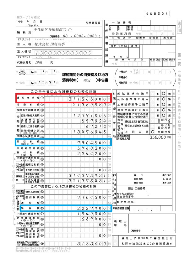 ポイントは、消費税確定申告書の「課税標準額」です。