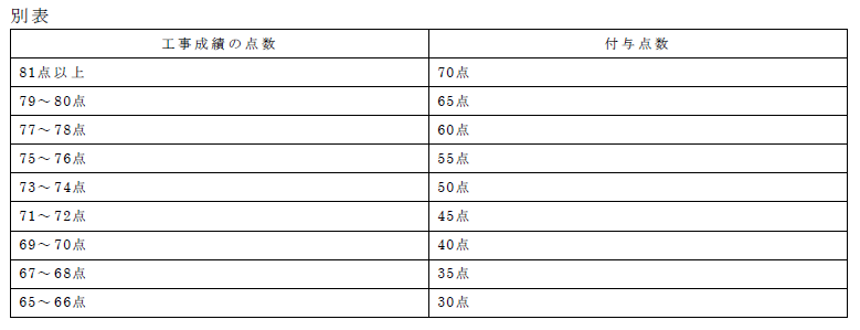 ・過去2年の入札指名停止・・・1ヶ月につき、マイナス10点