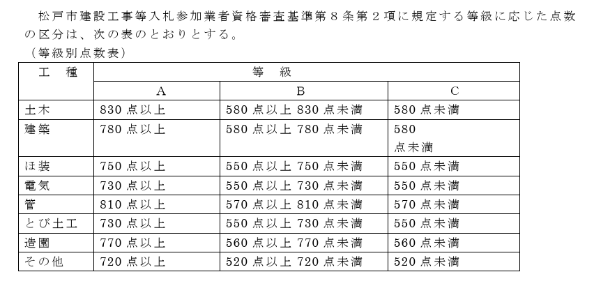 ★等級の区分は、経審P点+松戸市主観点で決まる!