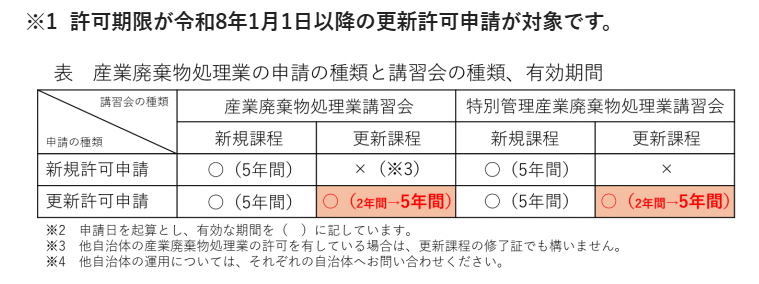対象は、令和8年1月1日以降の更新許可申請となります。