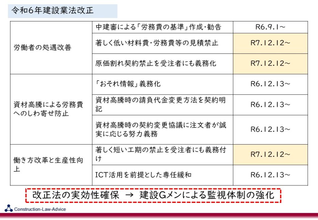 令和7年12月12日より令和6年建設業法改正が完全施行されます。
